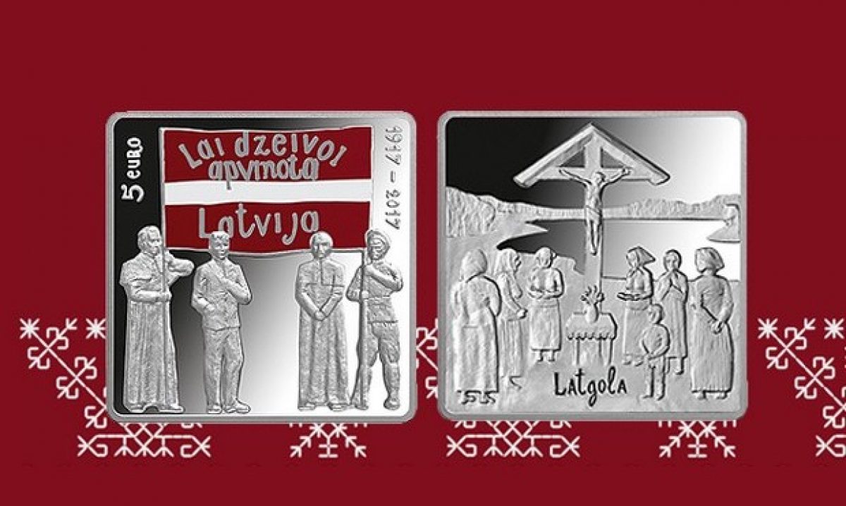 Itei moneta ir Latvejis Bankas pateiceiba Latgolai par īguļdejumu Latvejis vīnuoteibys i vaļstiskuma idejis atteisteibā.