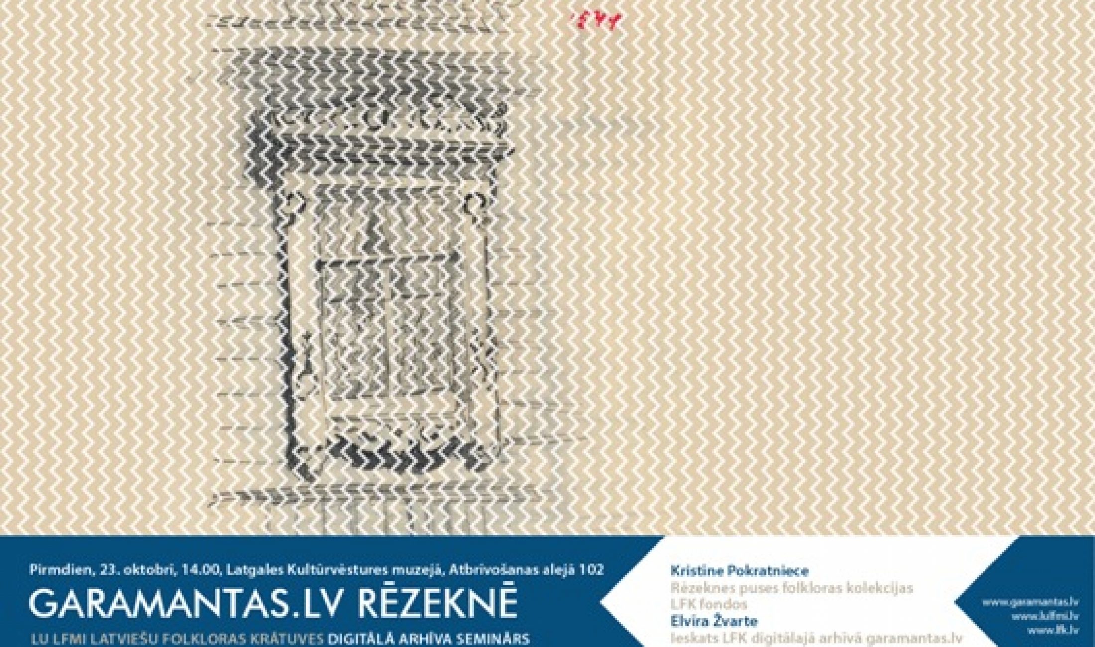 23. oktobrī seminarā garamantas.lv redaktoris – Elvīra Žvarte i Kristīne Pokratniece īpazeistynuos interesentus ar LFK digitaluo arhiva izmontuošonys vareibom, kai ari pastuosteis i paruodeis, kaidi Rēzeknis pusis materiali atrūnami Latvīšu folklorys kruotuvē.