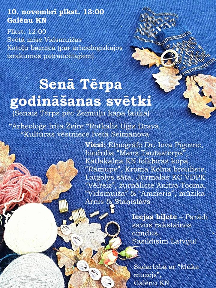 Senejuo tārpa gūdynuošonys svātki suoksīs 12 stuņdēs ar Svātū Mišu Vydsmuižys katuoļu bazneicā, 13 stuņdēs Gaļānu Kulturys nomā sasatikšona ar kulturys viestneicu Ivetu Seimanovu, arheologi Iritu Žeiri i rūtkali Ugi Dravu. Iz pasuokumu kai īejis biletus aicynoj jimt leidza rokstainūs cymdus.