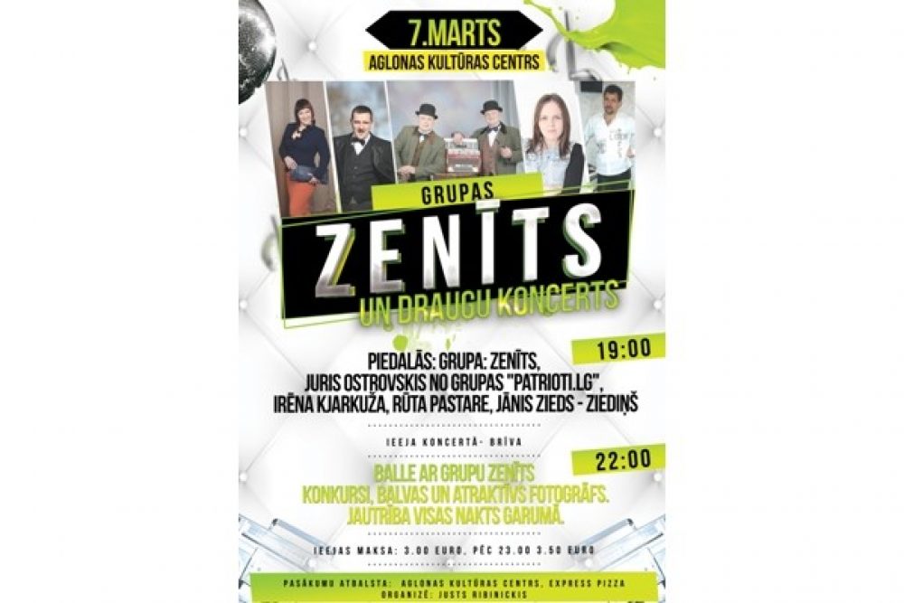 7.martā Aglyunys kulturys centrā 19:00 stuņdēs nūtiks grupys “ZENĪTS” i draugu koncerts.