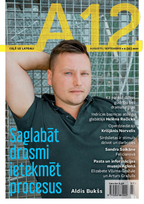 Izguojs žurnala “A12” 2021. goda augusta/septembra numers, kurymā itūreiz var puorskaiteit sarunu ar kriminalromanu rakstnīku, jaunū Bolvu nūvoda dūmis deputatu Aldi Bukšu, izzynuot par Latgolys uorstnīcyskajim iudinim Valentina Lukaševiča stuostā, kai ari gasteit Aglyunā i īpazeit jaunū Posta i informacejis muzeju.