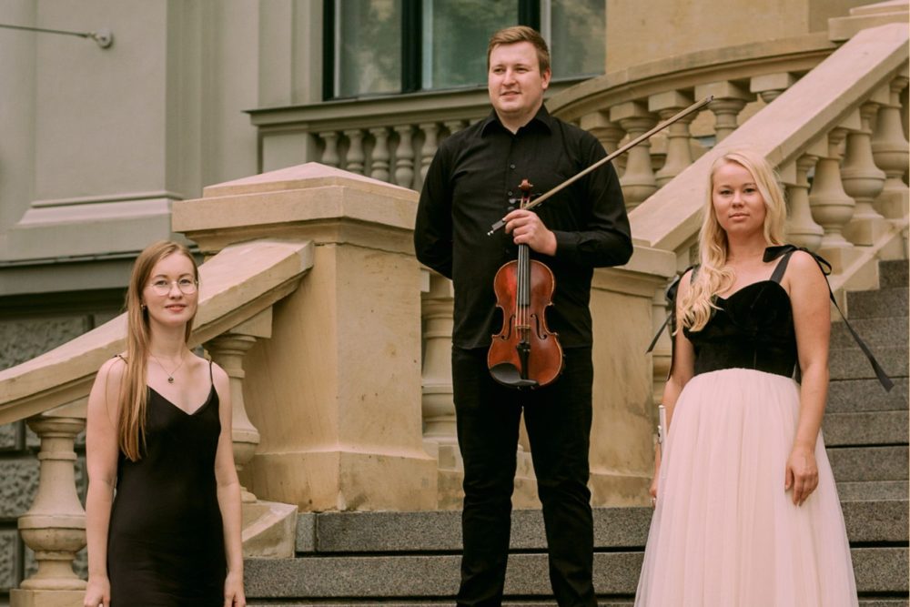 Trio sastuovā muzicej flautiste Dārta Stašāne, vejūļnīks Ingus Grīnbergs i pianiste Inta Klimoviča.