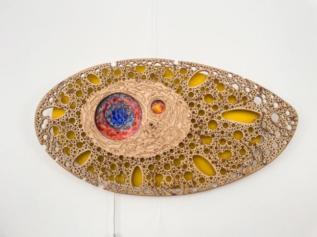 Muokslineica Inga Salmiņa, kurei struodoj cytaidā tehnikā – muokslys dorbi teik radeiti stykla kausiešonys procesā – iz Ciesim ir atbraukuse ar stykla traukim, stuņdinīkim, rūtom, kai ari kūpā ar kūka muokslinīku Juoni Zīmeli radeitajim objektim. Ingys Salmenis darbneica “Styklys nu Leivuona” suocēs, kod ryupneicys Leivuonā vaira nabeja i gribiejīs, kab koč kaids styklys Leivuonā byutu. “Kū vaira struodoj ar styklu, tū interesantuok palīk. Niu tei ir taida cīši stabila aizaraušona. Munūs dorbūs var redzēt Latgolys ainovu klasiskūs lineju – Daugovys lūku, pakolnu, dobys īspaidu,” nūsoka Inga. Muokslineica atzeist, ka itaidys izstuodis cytuos vītuos ari ir vierteigys: “Īrosts, ka izstuodis saīt organizēt vysā regulari. Pādejūs godūs vys tik muna prioritate ir stykla darbneicys paplašynuošona, itūgod izstuožu maņ ir moz. Sovulaik beja daudz, piečuok byus otkon vaira, tok taišni itūšaļt itei izstuode ir vīna nu rešūs, kur uorpus Leivuona apsavērt munus dorbus.”