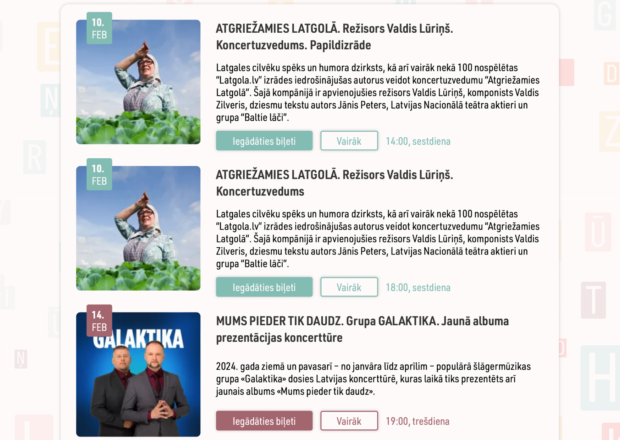 Laura Spundere grybātu kotram īsaceit vēļ itūgod apmeklēt koč vīnu kulturys nūtikšonu. Tys var byut tovā pogostā voi cīmā, var byut kaidā nu Latgolys lelūs kulturvītu, kai “Gors”, Lūznovys muiža, Rotko muzejs i cyti, vys kultura vysaiduokuos tuos izpausmēs boguotynoj tevi īškeji i dora prīceiguoku.