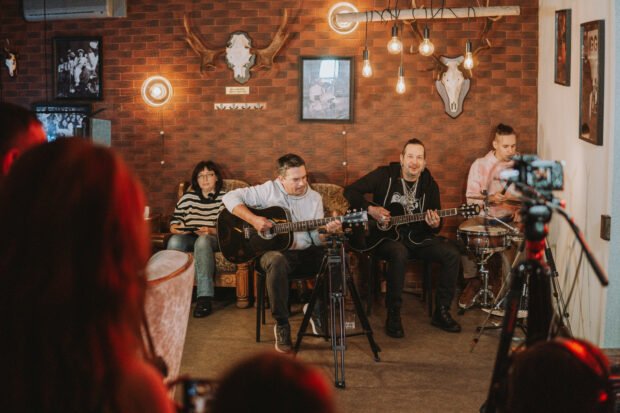 Nu Moskovys da Latgolys, sovys grupys i gitaru zeimyna. Saruna ar Juoni Kuzminski