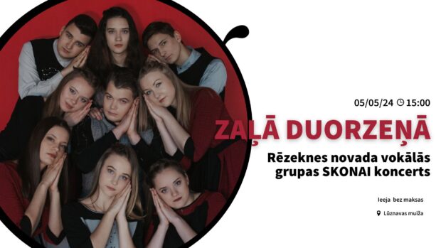 5. majā Lūznovys muižā pyrmatskaņuojumu pīdzeivuos Rēzeknis nūvoda vokaluos grupys “Skonai” jaunuokais veikums – koncertprograma “Zaļā duorzeņā”. Muzykaluo nūtikšona atspīgeļuos tū, kū vokaluos studejis “Skonai” vacuokajai grupai ir izadevs sasnēgt, kai ari identificēt par sovu vierteibu kompasu ituo gods laikā. Koncertprogramys pamatkūdūlu veidoj Guntrys Kuzminys-Juknys latgalīšu tautysdzīšmu apdaris, kai ari originalkompozicejis, kurys tiks atskaņuotys a cappella aba bez instrumentala pavadejuma.