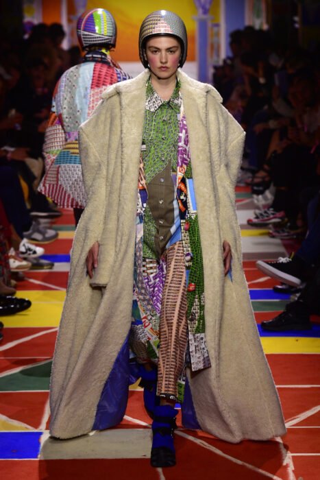 Vīns nu atbaļsteituoju beja ari “Premiere Vision”, kas ir audumu izstuode, kura sasadorboj ar daudzim audumu ražuotuojim. Jī vysu apkūpoj i veidojās taids teikls, nu kura tu vari izavielēt ražuotuojus i ar tim piec tam sasadorbuot. Tu pats izavielej, kas tev interesej, i roksti e-postu, nu ūtra gola otkon naatbiļd, tod tu roksti vēļreiz. Tai es baigi ceinejūs, kab dabuotu vysu, kū grybu. Tok dabuoju vīnu baigi foršu audumu – eko kažuka uodu, kas nav nu sintetikys, bet nu augļu atkrytumu i kanipu škīdrys miksa, cīši interesna! Vyspuor augu audumi palīk arviņ popularuoki, turpynojās eksperimenti, kab aizstuot dabeiguos uodys i sintetiku.”
