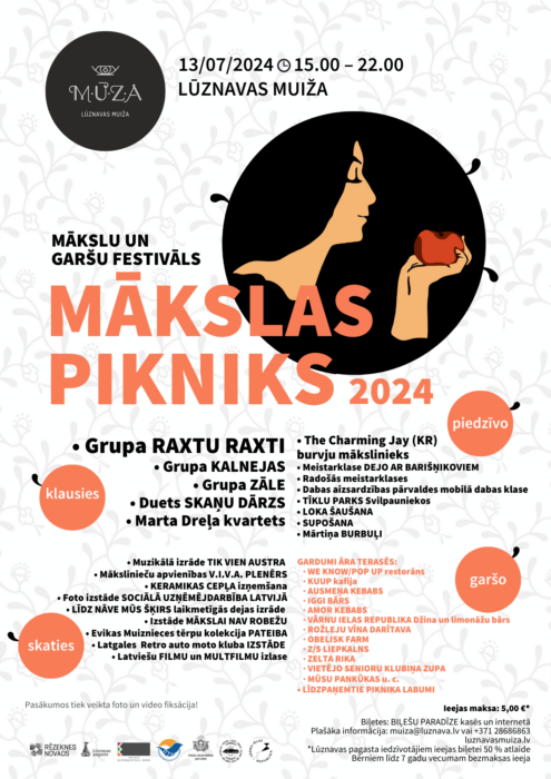 Sastdiņ, 13. julī, nu 15.00 da 22.00 stuņžu Lūznovys muižys teritorejā nūtiks 9. muokslu i garšu festivals “Muokslys pikniks 2024”, informej tuo organizatori. Ari itūgod tys pīduovuos cīši daudzveideigu programu – vysaidu žanru muzyka, muzykaluo teatra i laikmeteiguos dejis izruodis, būru triki, “Baltās grāmatas” karuseļs, latvīšu jaunuokuo kina, muokslinīku pleners, meistarklasis, kai ari garšu ceļuojums.