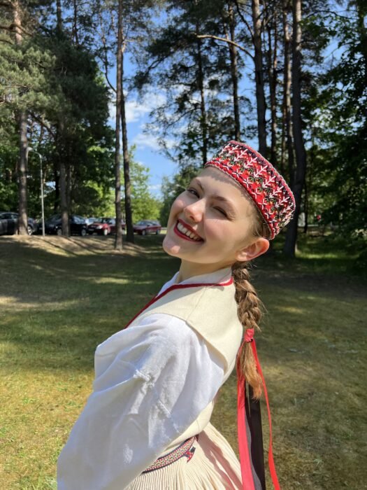 Nui, maņ vysod ir bejs baist pagaist nu īryndys. Vysod bejuse gribiešona sasnēgt vaira. Jau nu 8. klasis dorbojūs projektā “Future Heroes Latvia”. Tys ir meitiņu lidereibys i izaugsmis projekts, kurs mani īvede projektu pasaulī. Sekuoja vēļ dažaidi lidereibys projekti, par pīmāru, Pasauļa Dobys Fonda “Aizstuoveibys akademeja”. Piečuok jau ari pīsasaceju “LTG tu dū!” (jaunīšu izaugsmis i Latgolys izzynuošonys programa – M.P.). Paraleli školai raugu aktivi dorbuotīs pošpuorvaļdē, kai ari aizaraunu ar tautys dejom – doncoju kai Rēzeknis Vaļsts 1. gimnazejis tautys deju kolektivā “Skali”, tai ari Rogovkys jaunīšu deju kolektivā “Troks voi”.