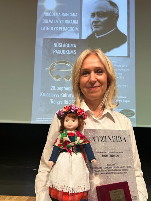 Suokumā Ludzys piļsātys vydsškolā školuotuojis suoce vadeit stuņdis. Maņ ari cīši gribiejuos, deļtuo es uzrunuoju direktori i jei beja ar mīru. Izzynuoju, kai i kū dareit, kab es byutu par školuotuoju. Izguoju kursus Rēzeknis Tehnologeju augstškolā, savuocu grupeņu i suoču vuiceit. Par lelu prīcu, bārni beja cīši atsaudzeigi, kam jī kasdīnā dzierd volūdu. Jim jei ir tyva.