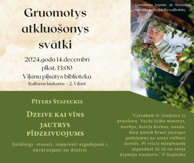 Gruomotys atkluošonys svātki byus 14.decembrī 13.00 stuņdēs Viļānu piļsātys bibliotekā (Kulturys laukums 2, Viļāni).