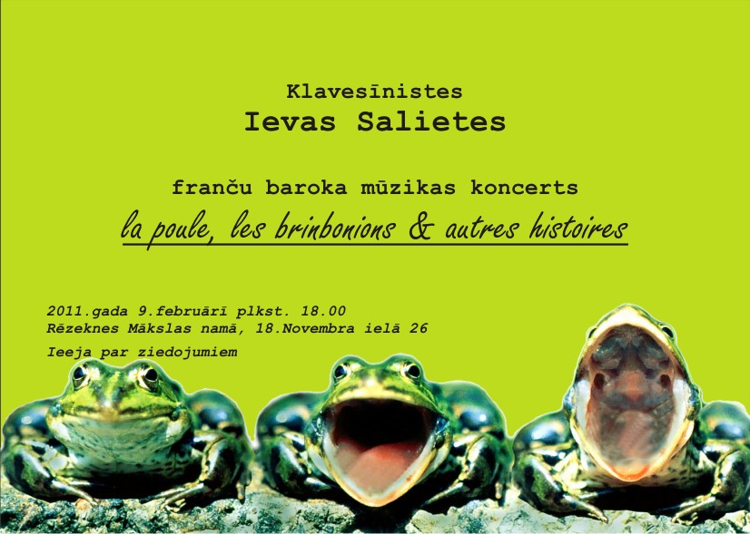 Itys koncerts byus eipašs ar tū, ka īcarātys ari sarunys. Kai tys izaviers, redzēsim vokora gaitā – maņ pateikt zynoma pašplyusma i improvizacejis momenti. Tai, ka tys varātu byut puorsteigums ari maņ! Nu jau vairuok kai pusgodu asu ite, i ir daguojs laiks īsapazeit – grybu paruodeit, kū doru es, i ari īpazeit baroka muzykys cīnietuojus Rēzeknē. Byus franču baroks i Latgolys zuoļu čaja – munupruot, cīši sadereiga kombinaceja!