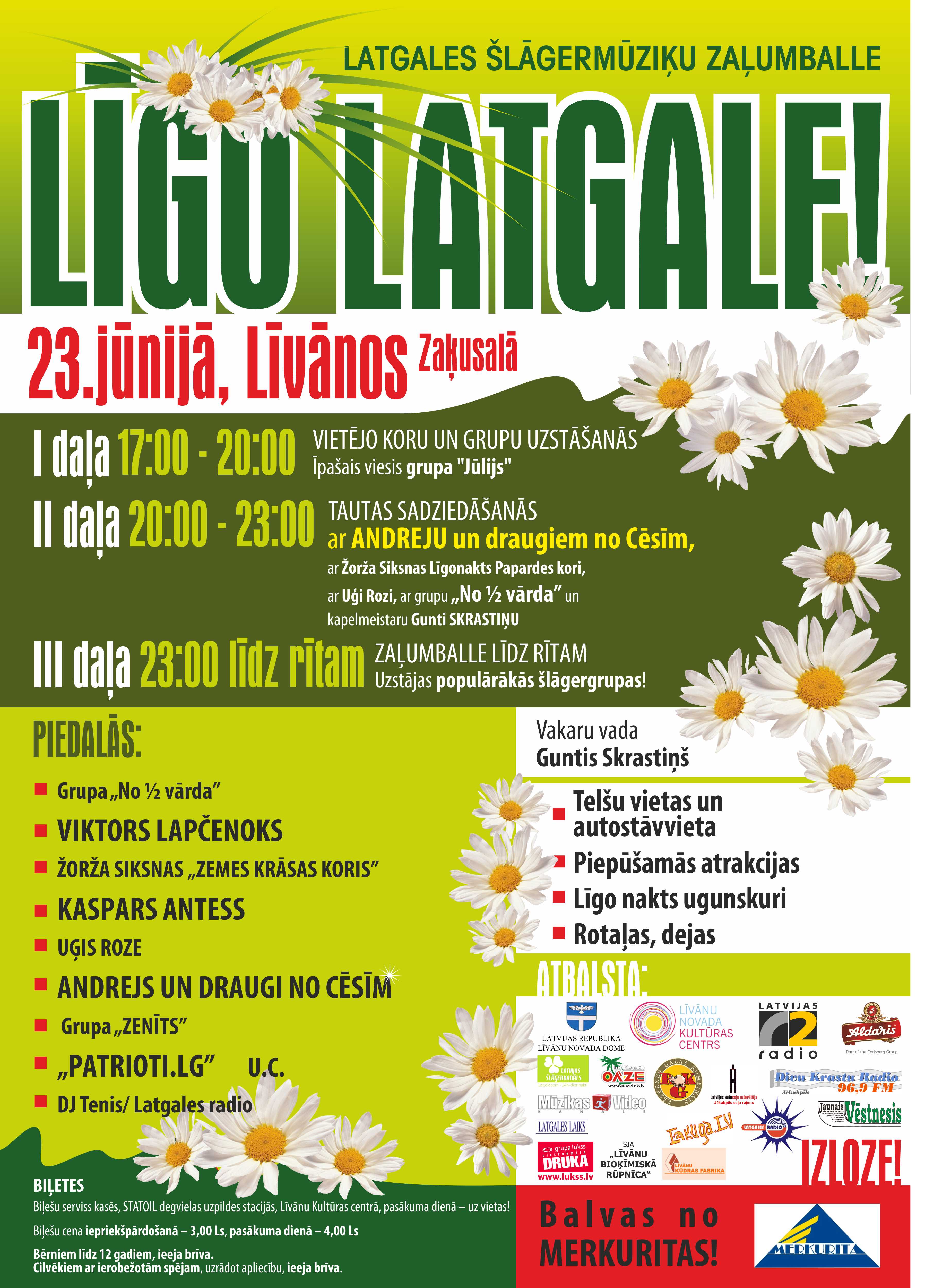 Beletus var īsaguoduot SIA „Biļešu serviss” kasēs, „Statoil” benzintankūs i Leivuonu Kulturys centrā, pasuokuma dīnā – iz vītys – Začu solā! Bilešu cena īprīškpuordūšonā 3 Ls, zaļumbala dīnā 4 Ls.