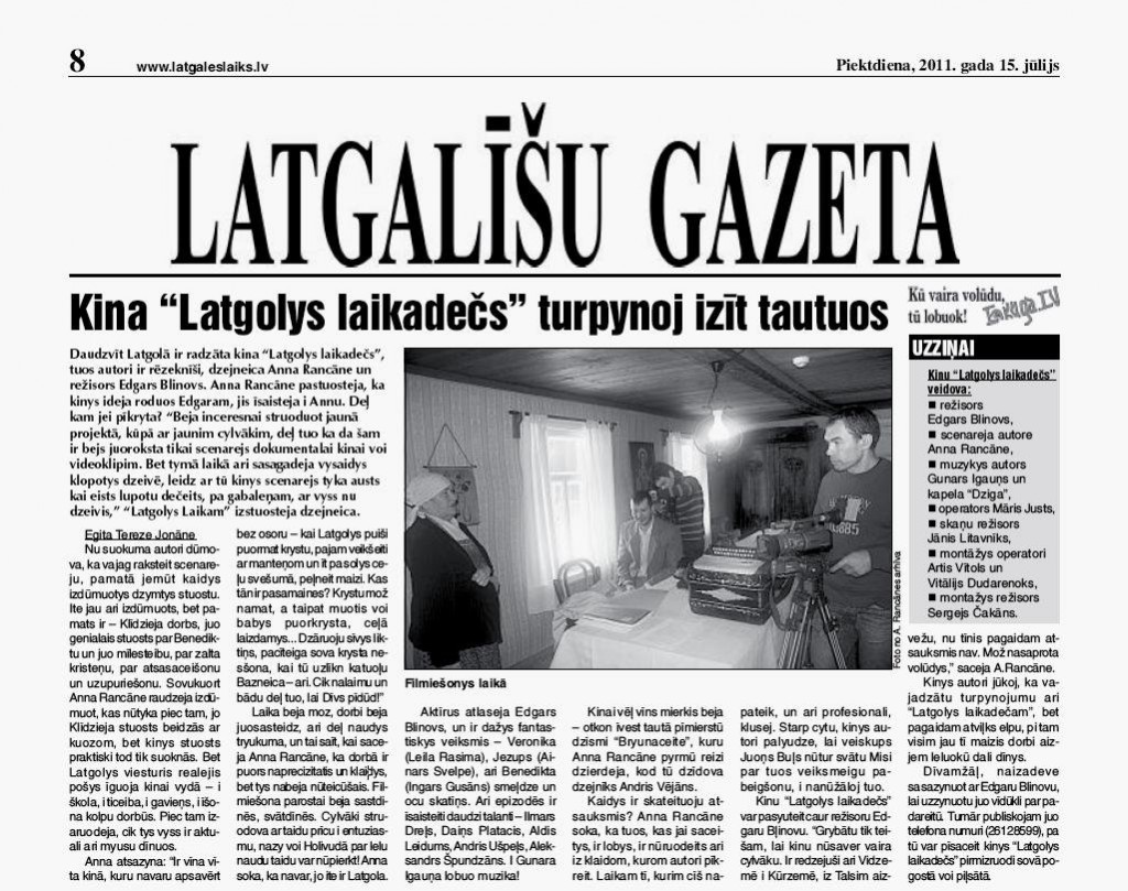 Laikroksts “Latgales Laiks” publiciejs plašuoku rokstu par kinu “Latgolys laikadečs” – pīduovuojam tū nūskaiteit: