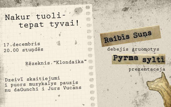 Gruomotys prezentaceja Rēzeknē “Klondaikā” nūtyks jau itymā sastdīnā 17.decembrī 20:00. Dzeivī skaitejumi ar puora muzykalom pauzem nu daGunchi i Jura Vucāna.