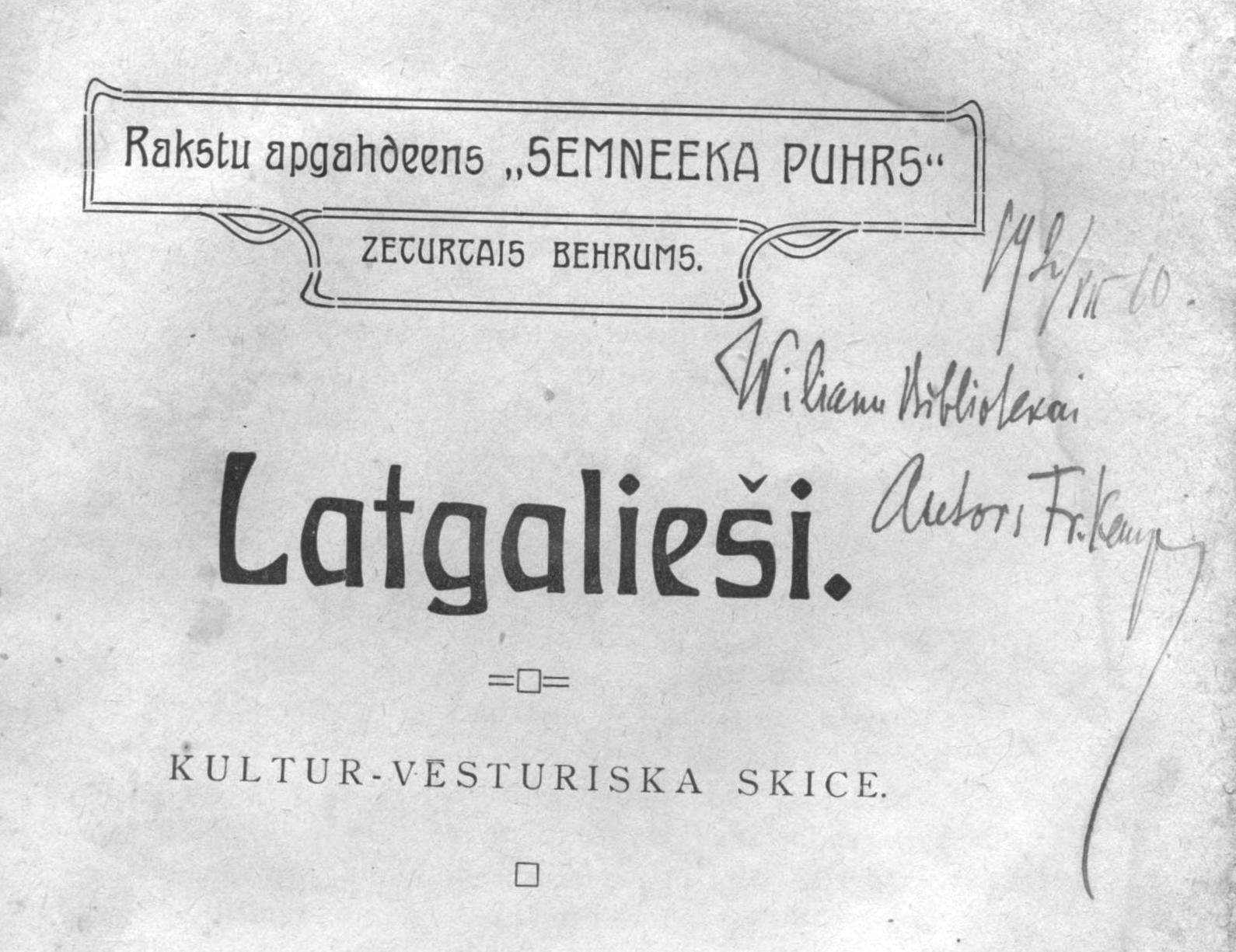 Lakugys skaiteituojim Zīmyssvātku duovona – unikala īspieja īsapazeit ar latgalīšu atmūdys darbinīka Franča Kempa 1910. godā Cēsīs izdūtū monografeju “Latgalieši”. Gruomota ite īlykta PDF formatā ar laipnu autora dāla Leopolda Kempa atļuovi.