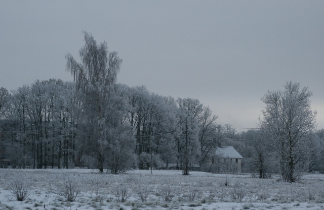 Aiz zylgmojūšim mežim, kolnim snīguotim,