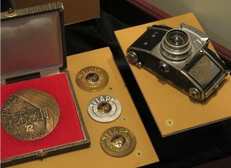 Karteņuos: 1. Juoņa Gleizda fotoaparats „Exacta” i medalis LKM ekspozicejā „Rēzekne laikmatu grīžūs”.