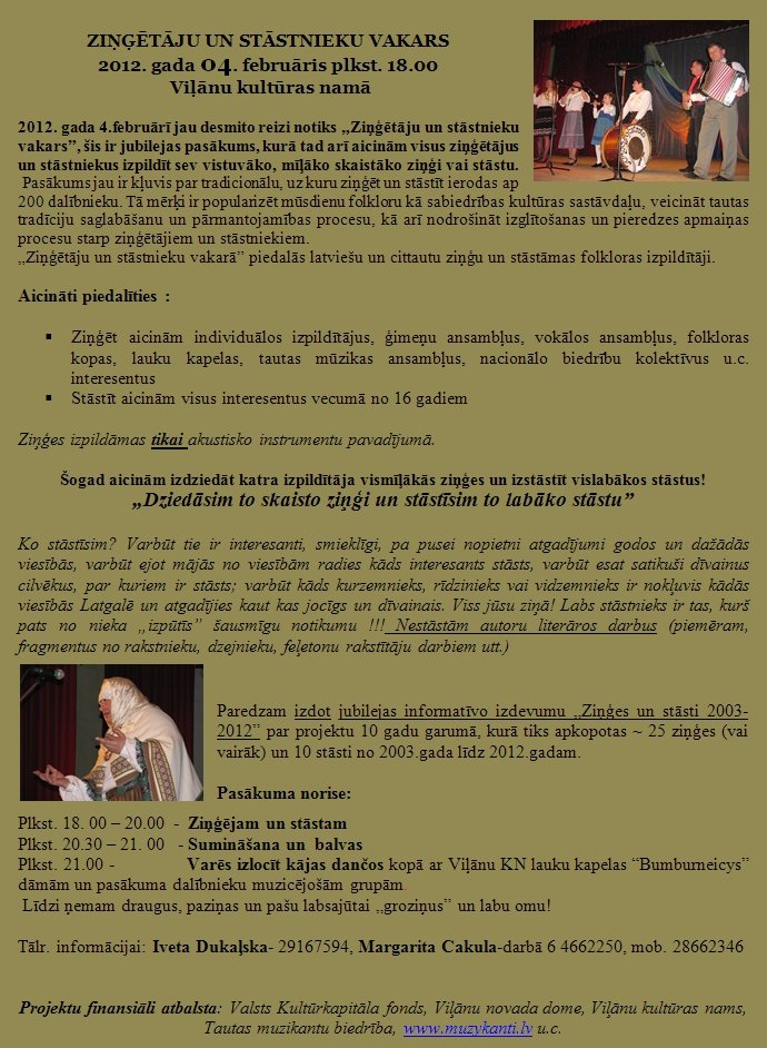 Iz 26. februari 18 stuņdem puocalts Viļānu kulturys nomā paradzātais jau dasmitais „Ziņgeituoju i stuostnīku vokors”. Pasuocīns ir klivs par tradicionalu nūtykumu, iz kuru ziņgeit i stuosteit īsarūn ap 200 dalinīku.