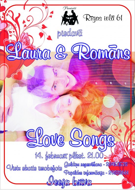 Laura i Romāns pīduovuos mīlesteibys dzīšmu programu „Love songs” – koč ari vaira skanēs dzīsmis angļu volūdā, kūpā mīlesteiba tiks izdzīduota sešuos volūduos: skanēs dzīsmis ari franču, krīvu, latvīšu, vuocu i latgalīšu volūduos. Kai soka Laura – pa drusceņai nu kotrys!