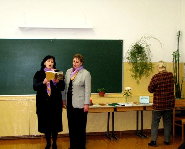 …Klusa muzyka, latgalīšu volūdys puļceņa „Pyrmī osni” školuotuojis Veltys Adijānis īvodvuordi, gruomotu i cytu materialu izstuode. Gaiši dag svece i bolta zīd mārteņrūze darbeiga cylvāka pīmiņai. Bārni skaita daiļdorbu fragmentus, vēļreiz izdzeivojam zvejis laiku ar „škūbri biksēs” i bezkauneigū brīža bārnu, izdzeivojam mozuo Ontona catūrtū dzimšonys dīnu. Školuotuoja Ināra, sovulaik Ontona Matvejāna audziekne, i školuotuoja Inguna doluos atmiņuos par laiku, kas puorbyuts kūpā ar darbeigū ŠKOLUOTUOJU, par laiku, kas puorbyut kūpā ar dzīsmi. Kai skaists sirsneigs sveicīņs školuotuojam jubileja reize, izskaņ ari Ingunys i Inārys dzīduotuo dzīsme.