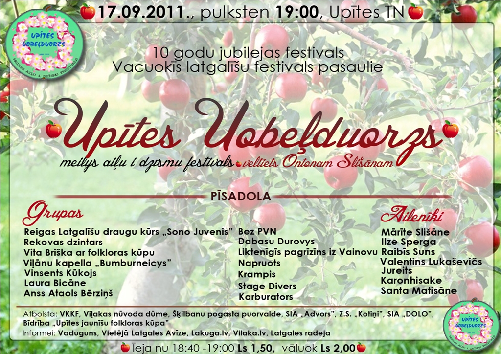 Jau 10. reizi Viļakys nūvoda Škilbanu pogosta Upītē nūtyka meilys aiļu i dzīšmu festivals „Upītes Uobeļduorzs”, kas 2011. godā tyka veļteits Ontona Slišāna pīmiņai. Tradicionali festivalā pīsadalieja latgalīšu ailinīki i muzykanti. Latgalīšu grupom kai sātys aizdavums beja sagataveit kaidu dzīsmi ar Ontona Slišāna vuordim i, pasasokūt itam aizdavumam, tyka radeitys jaunys, skaistys latgalīšu dzīsmis. Festivalu organizej Andris Slišāns i Upeitis Tautys noms.