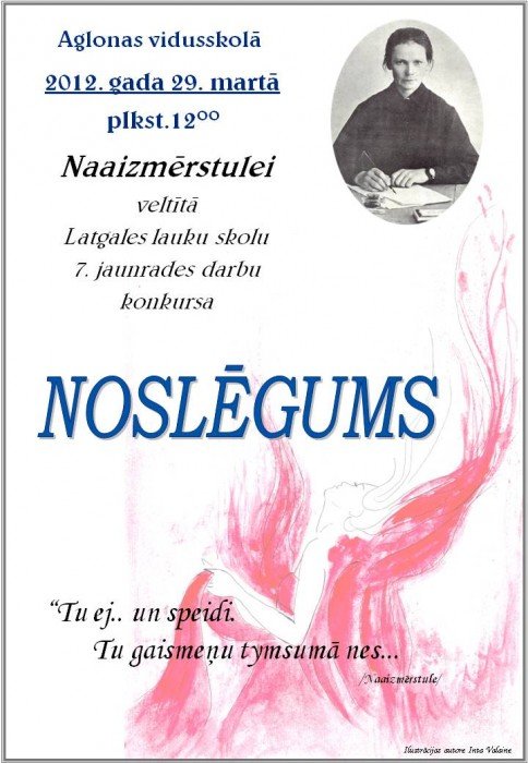 29. martā 12:00 Aglyunys vydsškolā byus Naaizmierstulei veļteituo Latgolys lauku školu septeituo jaunradis dorbu konkursa nūslāgums.