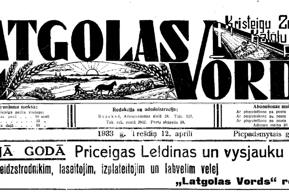 Olūts: Latgolas Vōrds. – Rēzekne, 1933. g. 12. aprelī. – Nr. 15.-16. pl. 3