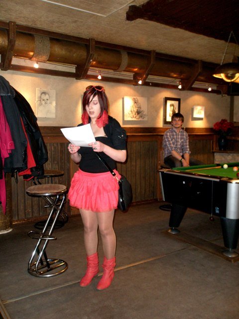 Pyrmuo sovu dzeju laseja myusu pošu LgSC bīdre Inga Zepa, ar tū izapeļneidama jiuru aplausu, bet piečuok lobū nūskaņuojumu uzturēja Rēzeknis Augstškolys studente Laura Kalvāne. Laura spieļuoja iz gitarys pošsacereitys dzīsmis, pylnys ar pavasara gaideišonu i mīlesteibu. Sovu talantu nasabeide izruodeit arī Juoņs Šaudiņš, na tikai losūt sovu dzeju, bet ari izstuostūt smīkleigus gadīņus iz dzeivis.