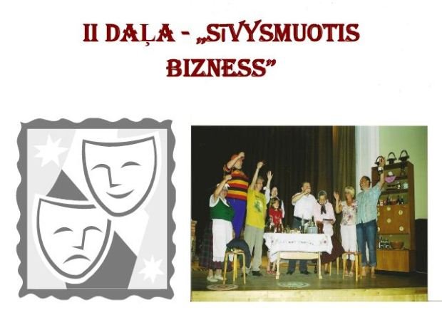 II daļa „Sīvysmuotis bizness” – …peic goda iz Domis, Vijis i Jezupa saimisteibu, brauc Vuocejis zemnīku delegaceja i zemkūpeibys ministrejis puorstuovi, kurūs nūlamts vīsmīleigi izjimt ar pīteikamu šmakovkys, ols i izliejumu daudzumu… Paleigā īt sābru Liva i Aļberts, veiramuote Stepce ar Lilitu i Juoni …