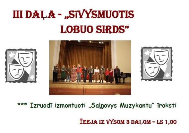 III daļa „Sīvysmuotis lobuo sirds” – …nuokomuo goda pavasarī Jezupa saime dūdās pīredzis apmainis braucīnā iz Vuoceju. Līvija ar Aļbertu gastej Reigā, deļ tuo Dome aicynoj paleigā cytu siebrineicu – Mariju, kuruo sovu veiru Pīteri aizsyuta uorstētīs nu alkoholisma… Cikom veirs paceli, Marija saorganizej Domis sātā preceibys… Veiramuote Stefaneja i itūreiz ir īintereseita persona…