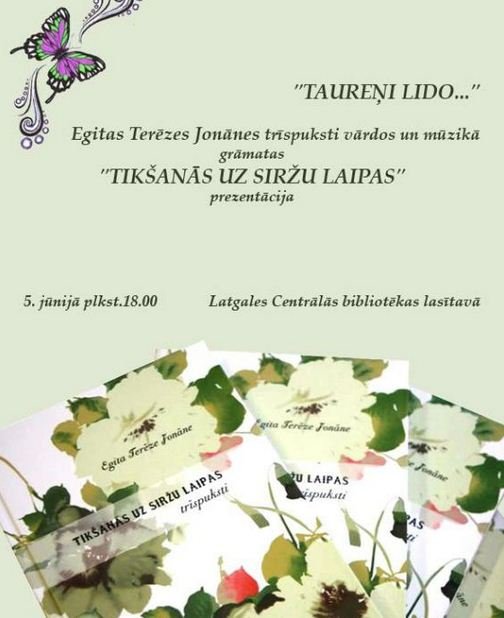 Reitu, 5. junī 18:00 Latgolys Centraluos bibliotekys skaiteitovā (Daugovpilī, Reigys īlā 22A) byus Daugovpiļs žurnalistis Egitys Terēzys Jonānis gruomotys „Tikšanās uz siržu laipas” prezentaceja.