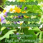 21:00 Kruoslovys estradē Juoņu īrūtuošonys pasuokums „Vysa zeme atskanieja Juoņa bārnu dzīsmeitem”. Zaļumbalu spēlēs Inga i Normunds.