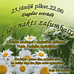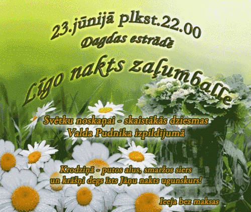 8:00 Preiļūs Zuoļu dīnys tiergs, 22:00 Preiļu parka estradē Juoņu nakts guņkurs i zaļumbals ar Irēnu i Juoni.