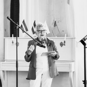 Inguna Būmane-Lūse pīsavārsuse patriotiskajai dzejai, jei apdzīd i Latvejis dzimšonu, i pūstu, i sorkonboltsorkonū karūgu, i seņču saknis. Aizbrauciejus jei saleidzynoj ar dzērvem, kas rudinī pamat dzymtū vītu i pagaist kai iudinī, latvīšu naspiejā vaļdeit vaļsti vainoj godu symtu verdziskumu, kai ari atzeist sovu naīdereigumu itymā laikā.