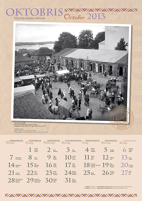 Kalenderi izdevs Latvejis Nacionalais viesturis muzejs sadarbeibā ar Latvejis suveniru taiseituoju apvībeibu „NicePlace”