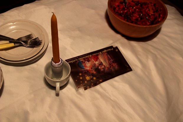 Svātku sastdinē, kūču vokorā, goldu apkluoja ar sīnu un apsedza ar teiru, boldu goldautu, tur izlyka kaladys un izvuoreituos kūčys. Naktī vysi brauca iz bazneicu, kur uzcalts Betleju stalleits ar engelim, vušku, kozu, ēzeli, Mariju, Jezupu un Jezu. Dzeivnīki pyrmī atguojuši sveicynuot Dīva Dālu. Jī tū siļdeja ar sovu dvašu. Vysam puori mirdzieja zvaigzne kai zemes un dabasu samīrynuotuoja, kai dzeivnīcyskuo un dīviškuo savīnuotuoja. Atsagrīžūt nu bazneicys vysim sirdīs beja prīca.