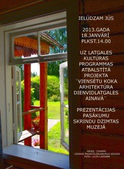 Skryndu dzymtys muzejā (Daugovpiļs nūvoda Vabalē) 18. janvarī 14 stuņdēs tiks prezentāts projekts „Vīnsātu kūka arhitektura Dīnvidlatgolys ainovā”.
