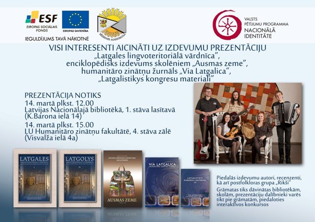 Pyrmuo prezentaceja nūtiks 14. martā plkst. 12.00 Latvejis Nacionalajā bibliotekā, 1. stuova laseitovā ( Kr.Barona īlā 14), sovpus iz ūtrū vysi laipni gaideiti plkst. 15.00  LU Humanitarū zinuotņu fakultatis 4. stuova zalā (Visvalža īlā 4a)