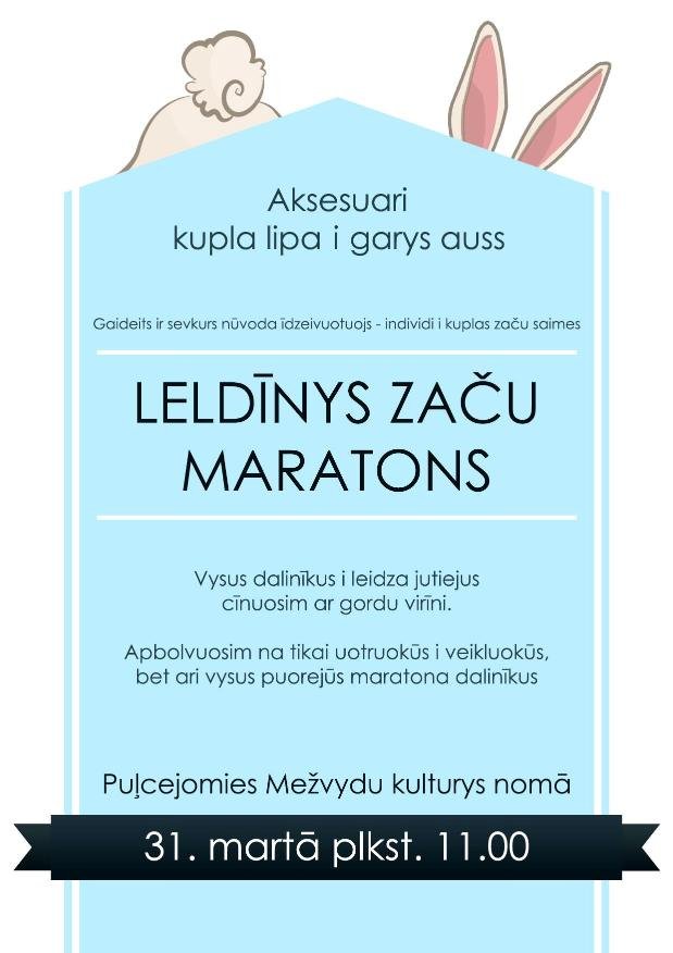 Var drūši apgolvuot, ka Leldīņu začu maratons ir loba tradiceja, kas jau trešū godu tiks organizāta Mežvydūs. Ka gribit vīnuvīt satikt Latgolys Leldīņu začus, braucit 31. martā, Ūtrajuos Leldīnēs, iz Mežvydu kulturys nomu, kur aktivitatis suoksīs jau 11 stuņdēs.