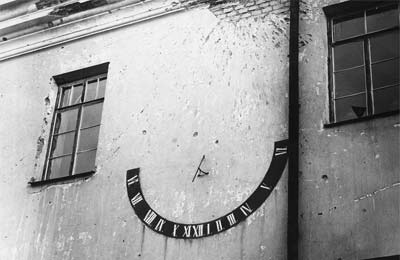 Saulis pulkstiņs uz bejušuos jezuitu kolegejis ākys Daugovpiļs cītūksnī.