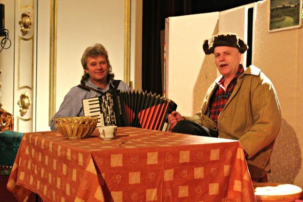 Imants: Nui, storp ainom laiku vajag aizpiļdeit, cikom kaids puorsagierb, sasagatavej. Beja suokums taids, ka mes laidem myusu vītejo vijūļnīka Andra Rancāna īrokstus, bet tod guoja dzeivs akordeons.