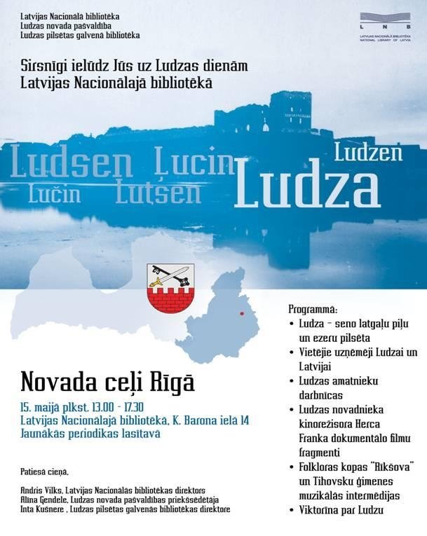 Reit, 15. majā, nu 13:00 leidz 17:30 Reigā, Latvejis Nacionalajā bibliotekā (Kr. Barona īlā 14), turpynojūt nūvoda dīnu tradiceju, nūtiks Ludzys dīnys, lai atkluotu Ludzys nūvoda kulturviesturiskū šarmu, īvārojamu nūvodnīku darbeibu, senejuos amatnīceibys tradicejis i uzjiemiejdarbeibys uzplaukumu.