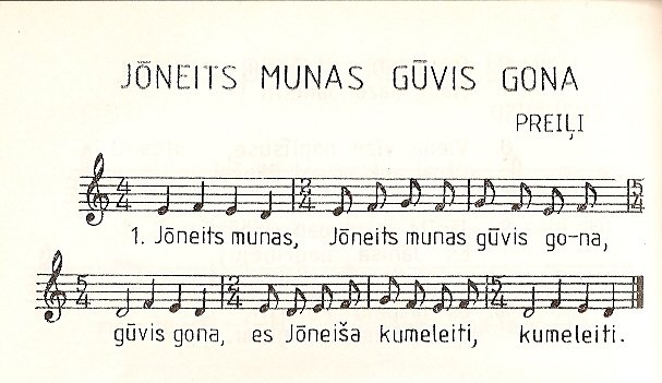 Kab Juoņa dīna byutu pylni latgalisku dzīšmu, LaKuGa skaiteituoju viereibai pīduovoj dažys dzīsmis. Lai radzātu dzīšmu notys, mīdz iz biļdis.
