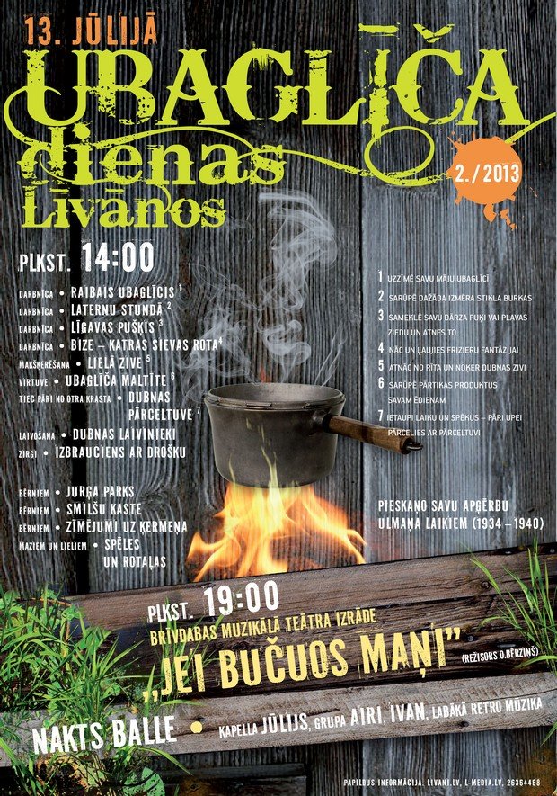 Itymā sastdīnē, 13. julī, 19 stuņdēs Leivuonā Ubogleiča dīnu gaitā sovu pyrmizruodi pīdzeivuos myzykala breivdobys teatra izruode „Jei bučuos mani”. Darbeiba izruodē nūteik storpkaru periodā, ruodūt diveju tureigu latvīšu saiminīku saimu ikdīnu. Tiks apspālāta ari tam laikam aktuala problema – precinīku mekliešona, monta daleišona i vacuoku vara puor sovim piecnuociejim.