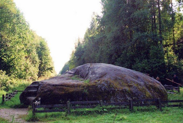 Geologi dūmoj, ka vysleluokū Latvejis akmini pyrms 15 godu tyukstūšom atness laduojs aba šliudūņs. Šliudūņs miļzeigū akmini beideja tyukstūš godu. Zynuotnīki dūmoj, ka akmiņs ir atrauts nu Dīnvydrītumu Sūmejis klintuoja i Austrumlatvejis zemīnis Jersikys leidzonumā.