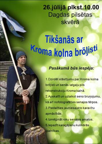 Pasuokumā byus īspieja dzierdēt stuostejumu par „Kroma kolna brōlisti” i senejuos latgaļu piļs rekonstrukceju Kroma kolnā, apsavērt i pīmiereit senejū bruņuojumu, kai ari nūsabiļdēt senejūs tārpūs, pīsadaleit jaunīsauktūs karaveiru apvuiceibuos, paraudzēt rūku senejūs omotūs i īpazeit karaguojīņu kulinaruos eipatneibys.