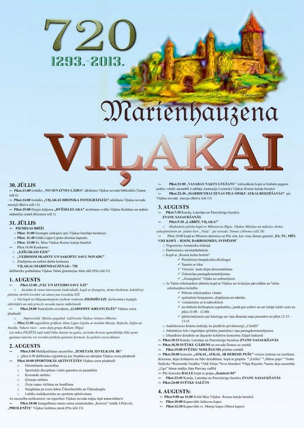 Itūgod Vileks, senejais nūsaukums Marienhauzena, svieteis 720. jubileju. Svātki tiks svieteiti vairuokys dīnys – nu 30. juļa leidz 4. augustam – ar dažaida veida nūtikšonom.