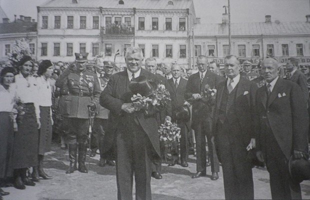 K. Ulmaņs Daugovpilī 1934. godā. Karteņa: Dārziņš, A. (red.). “Kārlim Ulmanim 135”. AS Lauku Avīze, 2012.