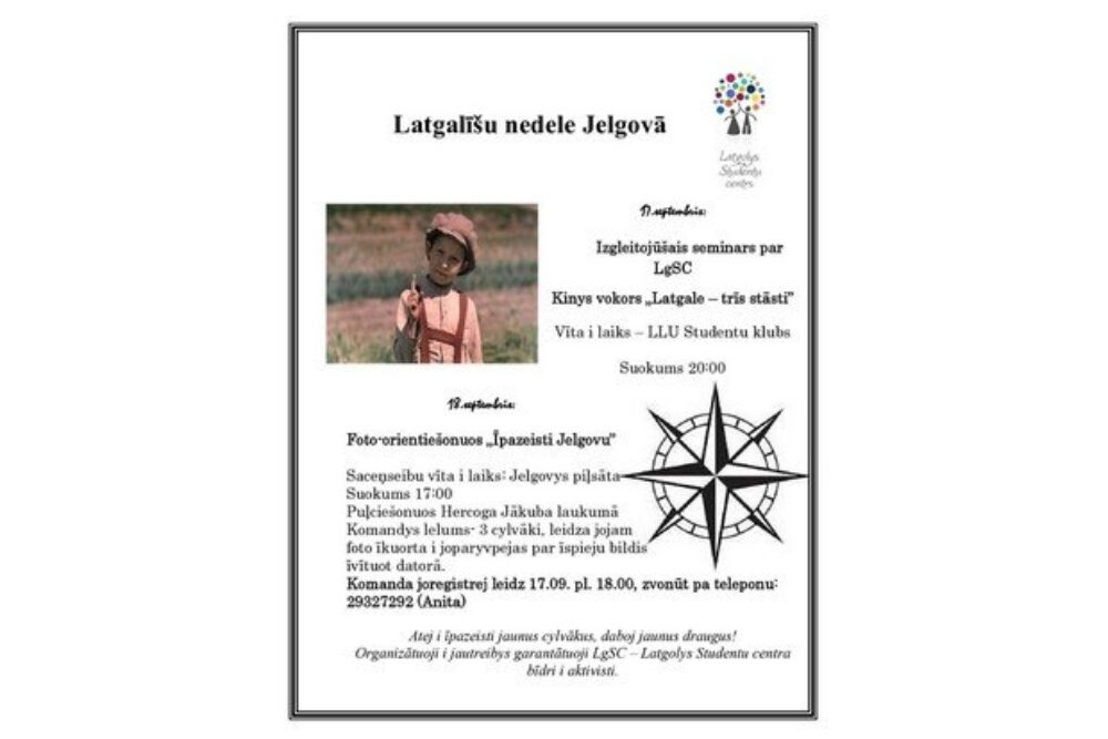 17. septembrī LLU Studentu klubā 20:00 izgleitojūšais seminars par LgSC, piec tam kina “Latgale. Trīs stāsti”.